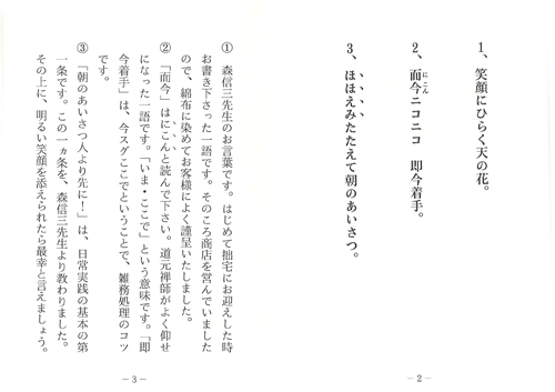 森信三先生や中江藤樹先生、マザー・テレサなどの偉人の言葉を要所要所に記載しています。