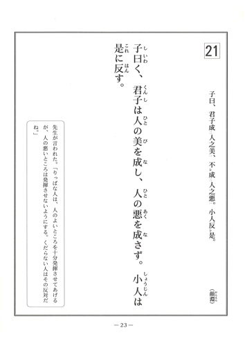 『論語』のような古典として生き残った書物は、内容も豊かですが、文章としても深い味わいがあります。ですので素読は、道徳教育であるとともに、国語教育でもあるのです。<本書[解説]より抜粋>